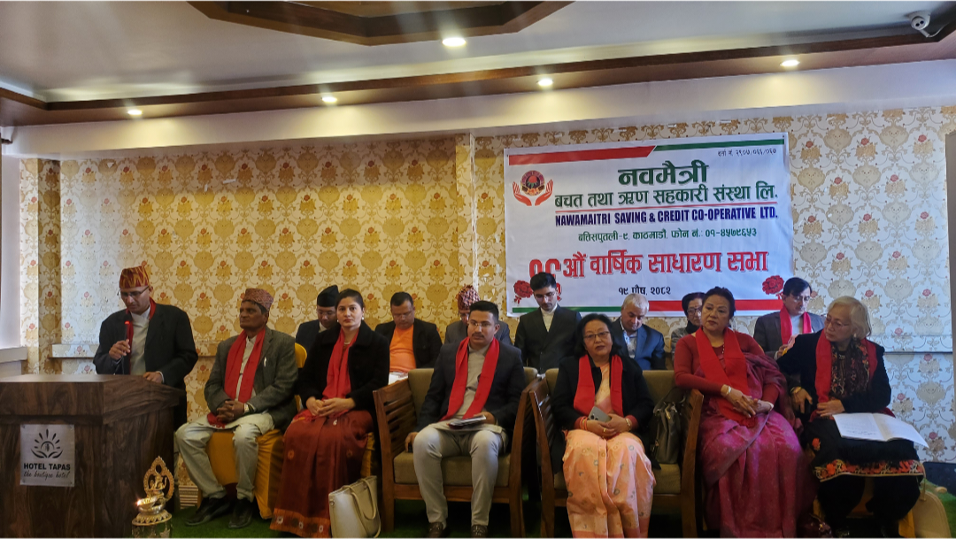 काठमाडौं । नवमैत्री बचत तथा ऋण सहकारी संस्था लिमिटेडको १६औँ वार्षिक साधारणसभा काठमाडौंको बत्तिसपुतलीस्थित होटल तपसमा सफलतापूर्वक सम्पन्न भएको छ। साधारणसभा संस्थाका अध्यक्षको अध्यक्षतामा सम्पन्न भएको हो।