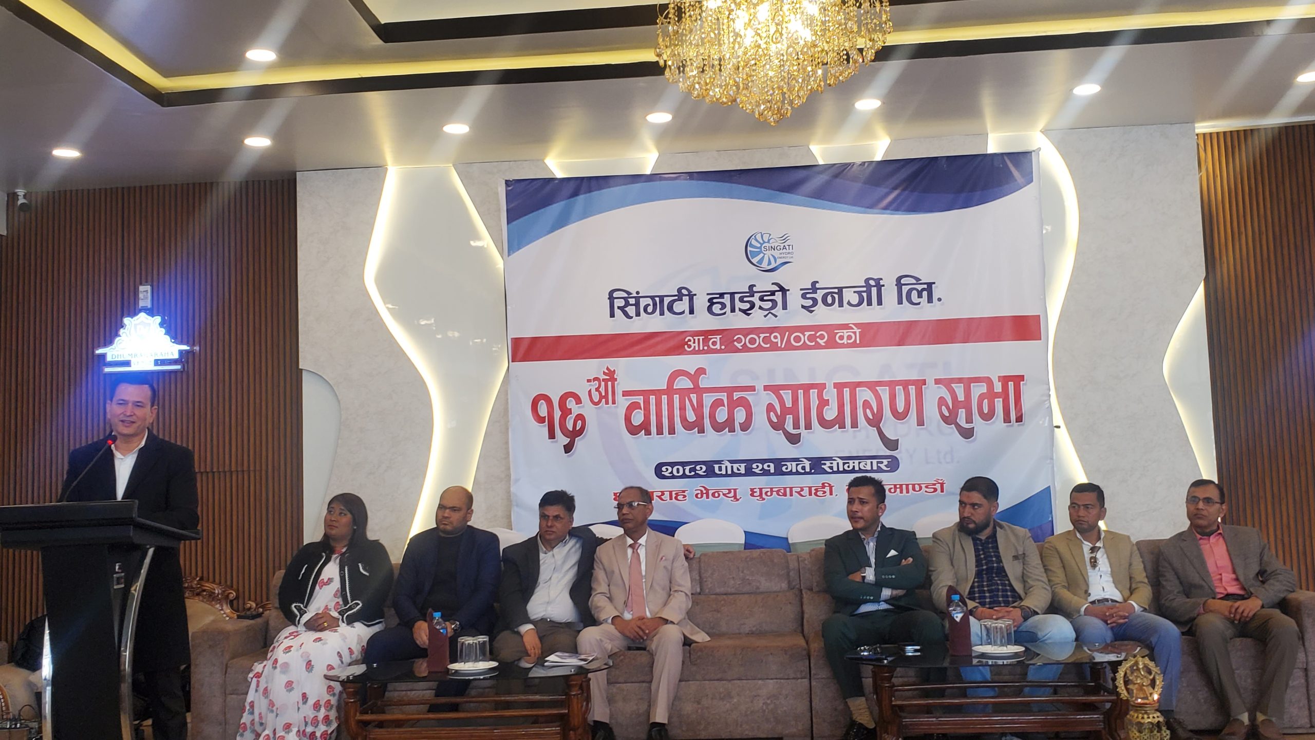 सिङ्गटी हाइड्रो इनर्जी लिमिटेडले १६औँ वार्षिक साधारणसभाबाट भएका निर्णयहरूले कम्पनीको दीर्घकालीन वृद्धि रणनीतिलाई सहयोग पुर्याउने, सेयरधनीको मूल्य अभिवृद्धि गर्ने तथा नेपालको नवीकरणीय ऊर्जा विकास लक्ष्यमा योगदान पुर्याउने विश्वास व्यक्त गरेको छ।