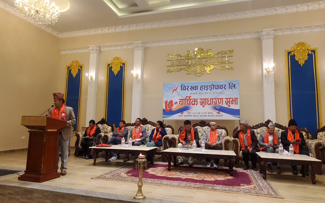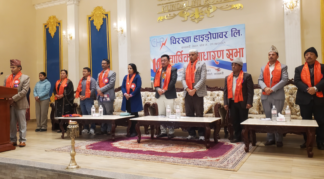 काठमाडौं । चिरख्वा हाइड्रोपावर लिमिटेडले आफ्नो सातौँ वार्षिक साधारण सभा (AGM) २०८२ पौष २३ गते काठमाडौंको जोरपाटीस्थित कुण्डलिनी रोयल्स मा सफलतापूर्वक सम्पन्न गरेको छ।