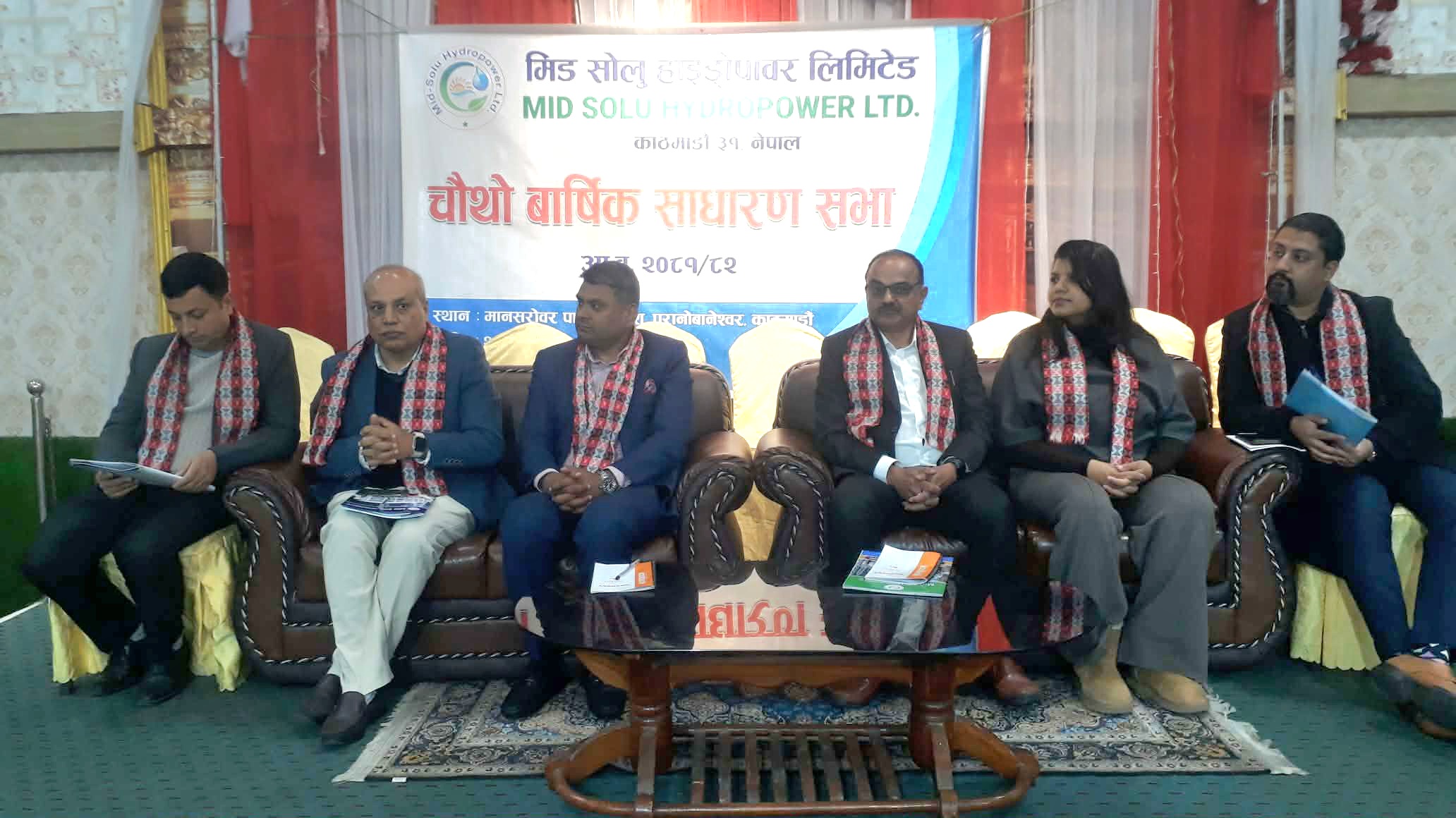 काठमाडौं । मिड सोलु हाइड्रोपावर कम्पनी लिमिटेडको चौथो वार्षिक साधारणसभा (AGM) सोमबार काठमाडौंको पुरानो बानेश्वरमा सफलतापूर्वक सम्पन्न भएको छ। साधारणसभा कम्पनीका अध्यक्ष भीमबहादुर पालको अध्यक्षतामा सम्पन्न भएको हो।