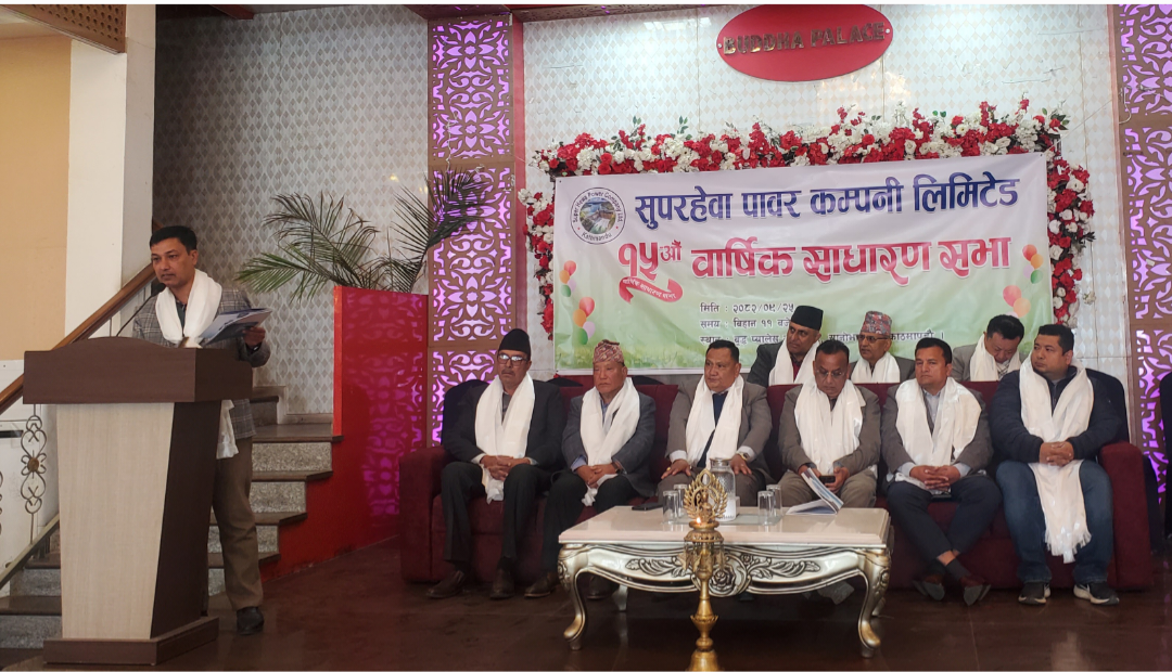 काठमाडौं । संखुवासभामा ६ मेगावाट क्षमताको सुपर हेवा खोला जलविद्युत आयोजना सञ्चालन गरिरहेको सुपर हेवा पावर कम्पनी लिमिटेडले आफ्नो १५औँ वार्षिक साधारण सभा सफलतापूर्वक सम्पन्न गरेको छ। शुक्रबार काठमाडौंको सानो भर्याङस्थित बुद्ध प्यालेस ब्याङ्क्वेटमा सम्पन्न सभाले कम्पनीको भावी रणनीति तथा सर्वसाधारणका लागि सेयर (IPO) निष्कासन गर्ने प्रस्ताव पारित गरेको हो।