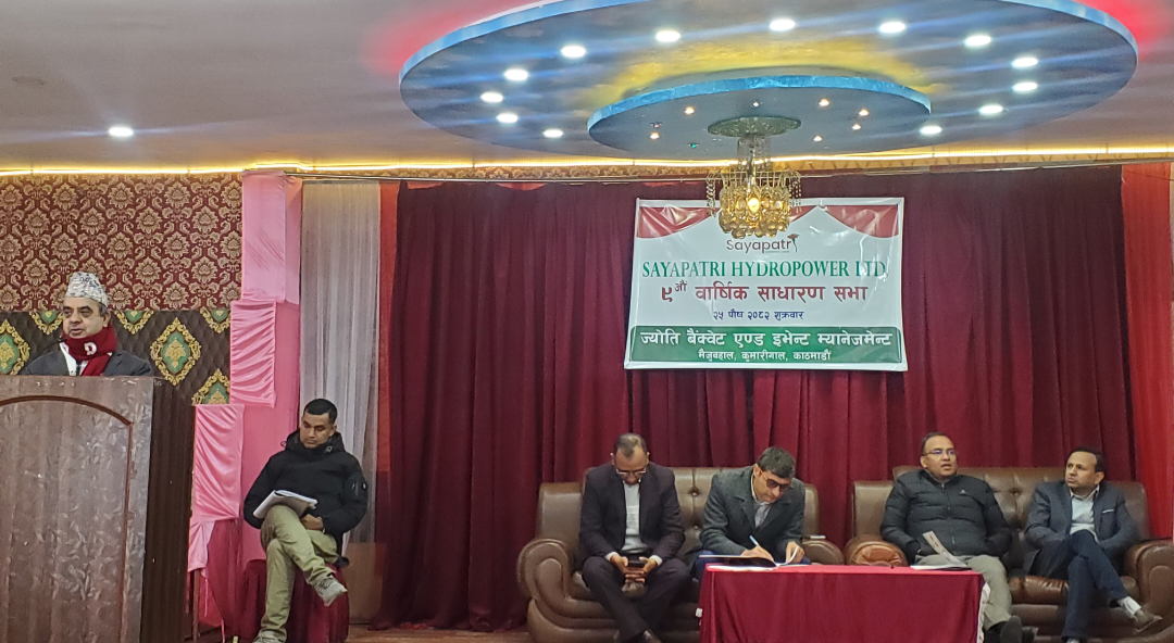 काठमाडौं । सयपत्री हाइड्रोपावर लिमिटेडले आफ्नो नवौँ वार्षिक साधारणसभा (AGM) काठमाडौंमा सफलतापूर्वक सम्पन्न गरेको छ। कम्पनीको सञ्चालक समितिको निर्णयअनुसार आयोजना गरिएको उक्त साधारणसभा सेयरधनीहरूको उल्लेख्य उपस्थितिमा सम्पन्न भएको हो।