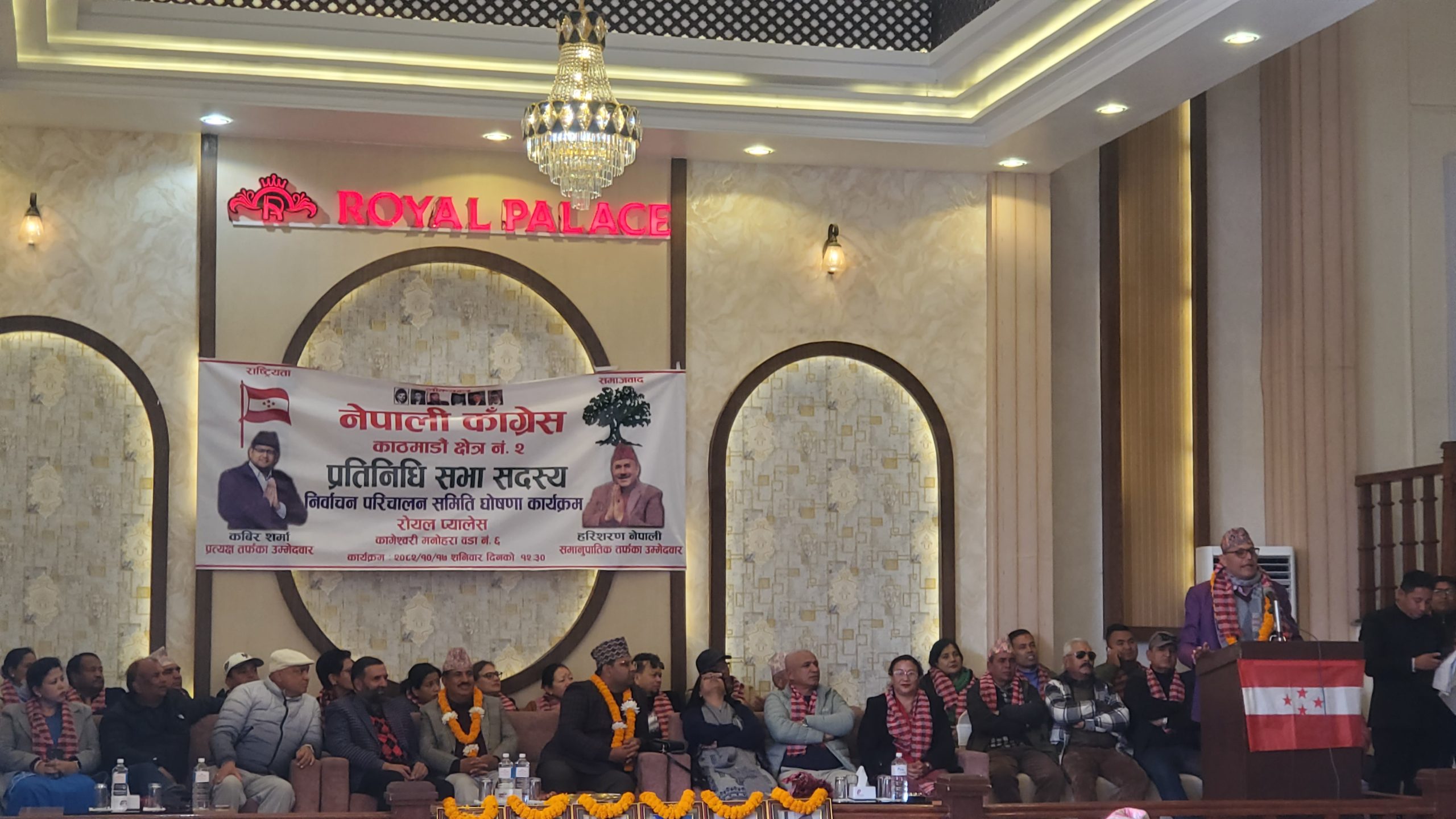 काठमाडौँ । यही फागुन २१ गते हुने प्रतिनिधि सभा निर्वाचनलाई लक्षित गर्दै नेपाली कांग्रेस काठमाडौँ क्षेत्र नम्बर २ ले आज विशेष चुनावी प्रचार–प्रसार भेला सम्पन्न गरेको छ । कांग्रेसका उम्मेदवार कबिर शर्मा फुयालको नेतृत्वमा रोयल पार्टी प्यालेस, मुलपानी क्रिकेट स्टेडियम अगाडि आयोजित भेलामा पार्टीका नेता, कार्यकर्ता तथा शुभेच्छुकहरूको उल्लेख्य सहभागिता रहेको थियो ।