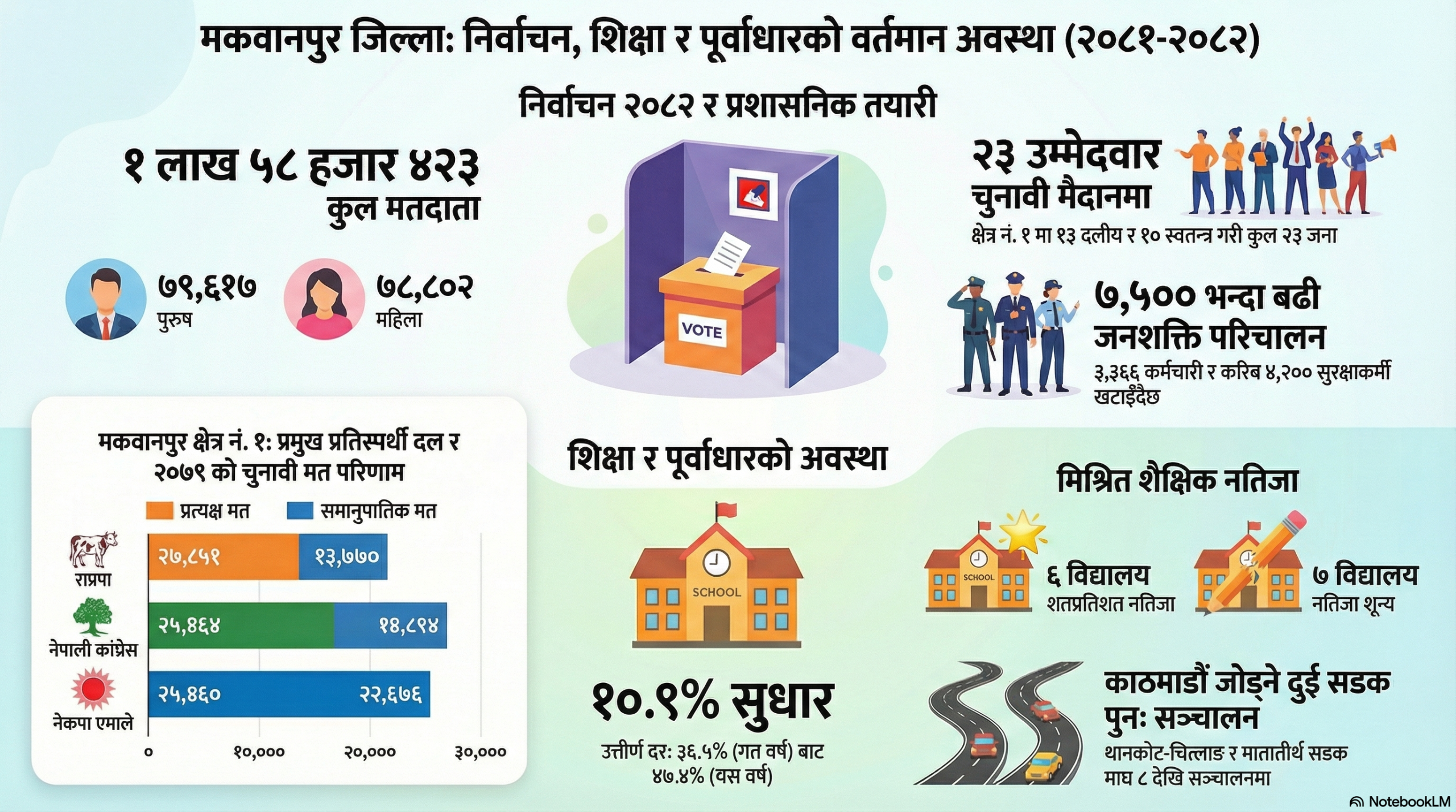 मकवानपुर–१ भौगोलिक र सामाजिक विविधताले भरिएको क्षेत्र हो। यहाँका मुख्य चुनावी मुद्दामा—