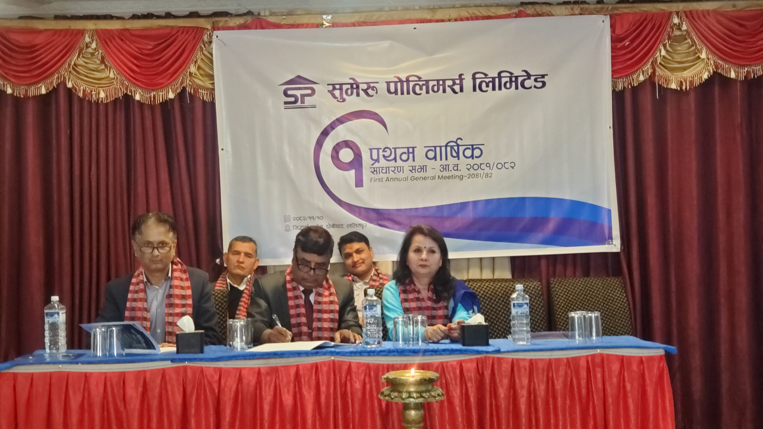 निर्माण रसायन तथा पाइप उत्पादन क्षेत्रमा क्रियाशील सुमेरु पोलिमर्स लिमिटेड को पहिलो वार्षिक साधारण सभा ललितपुरको धोबीघाटस्थित सिद्धार्थ कटेज मा सम्पन्न भएको छ । सभाले आर्थिक वर्ष २०८१/८२ का लेखापरीक्षित वित्तीय विवरण अनुमोदन गर्नुका साथै पूँजी विस्तार र आईपीओ निष्कासनसम्बन्धी महत्वपूर्ण प्रस्तावहरू पारित गरेको छ ।
