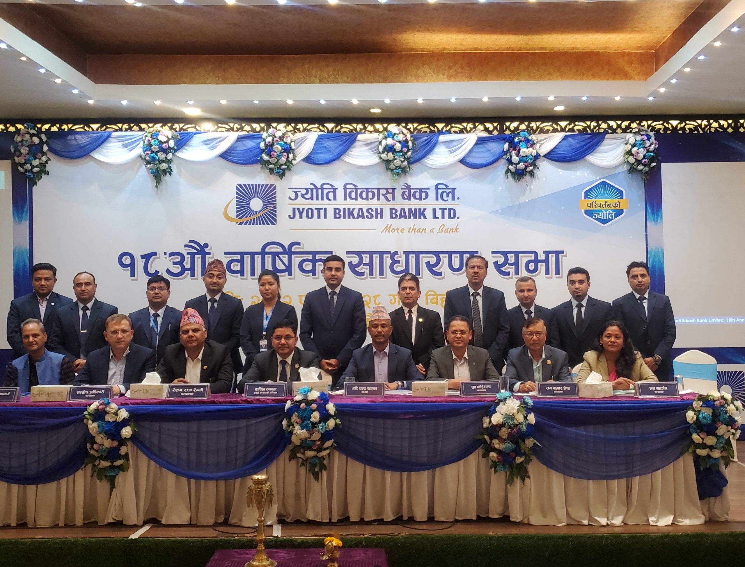 १८औँ वार्षिक साधारणसभा सम्पन्नसँगै ज्योति विकास बैंक लिमिटेड ले जिम्मेवार बैंकिङ अभ्यास र दीर्घकालीन मूल्य सिर्जनामा केन्द्रित हुँदै नेपालको वित्तीय क्षेत्रमा आफूलाई स्थिर र प्रगतिशील विकास बैंकका रूपमा स्थापित गर्ने लक्ष्य लिएको जनाएको छ।