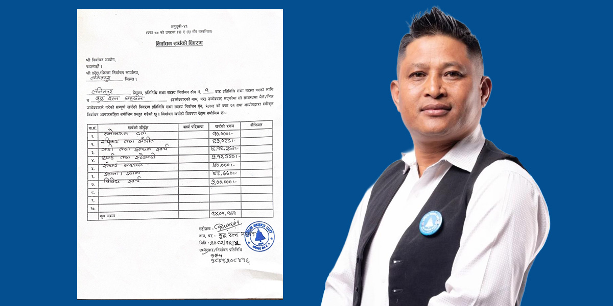 उनले सार्वजनिक गरेको विवरणअनुसार प्रचार–प्रसार, सवारी, इन्धन, खाना–खाजा, श्रमिक तथा अन्य विविध शीर्षकमा खर्च भएको उल्लेख गरिएको छ। कुल खर्च करिब १४ लाखभन्दा बढी रहेको देखिन्छ।